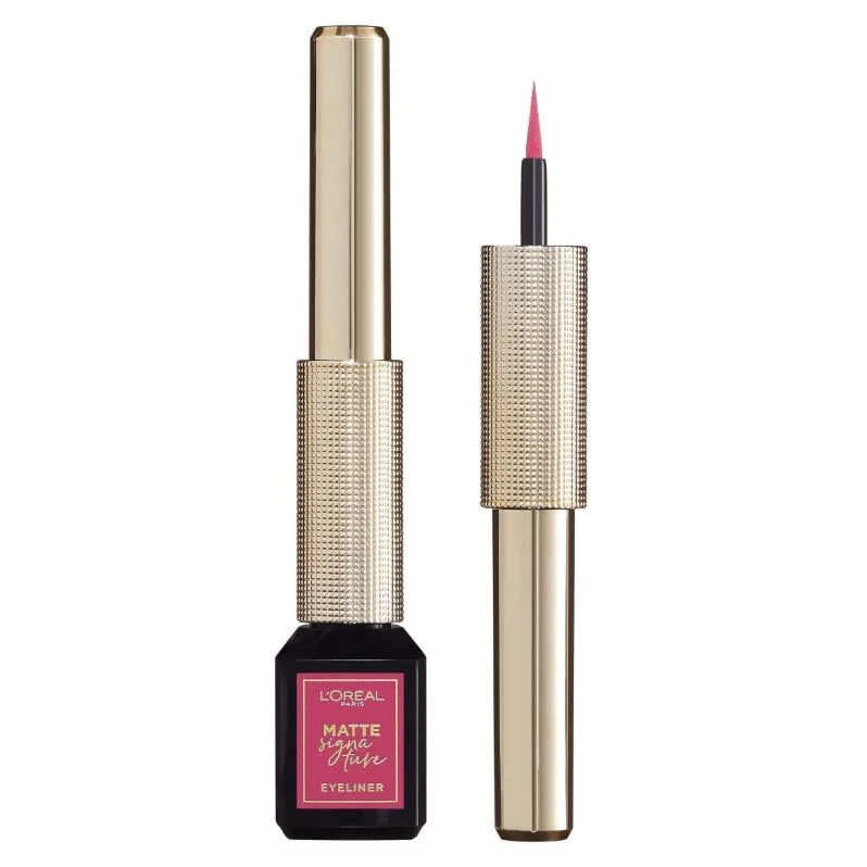 - L’Oréal Paris, Delineador de Ojos Líquido Matte Signature Liner, Acabado Mate, Trazo Preciso, Larga Duración, Resistente al Agua, Tono Nº 09 Fucsia.